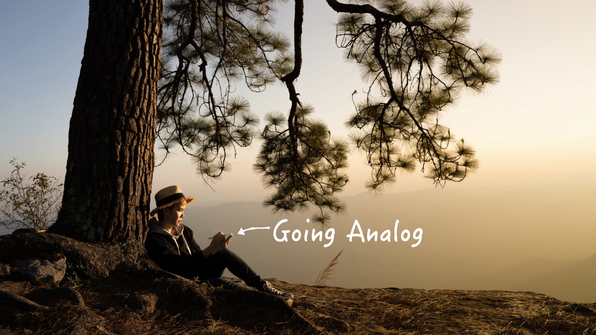 Many people also feel more creative or inspired while in nature. A pen and a notebook are useful analog tools for writing down your ideas as they flow to you naturally.